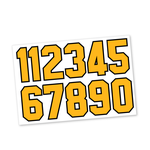 • Die cut number stickers for helmets and equipment • Professional quality, thick 20 mil vinyl decals! • Each sheet makes numbers 1-10. It takes 20 Sets to make complete numbers 1-100. It takes 9 Sets to make 1-25. It Takes 15 Sets to make 1-50. It takes 18 Sets to make 1-75